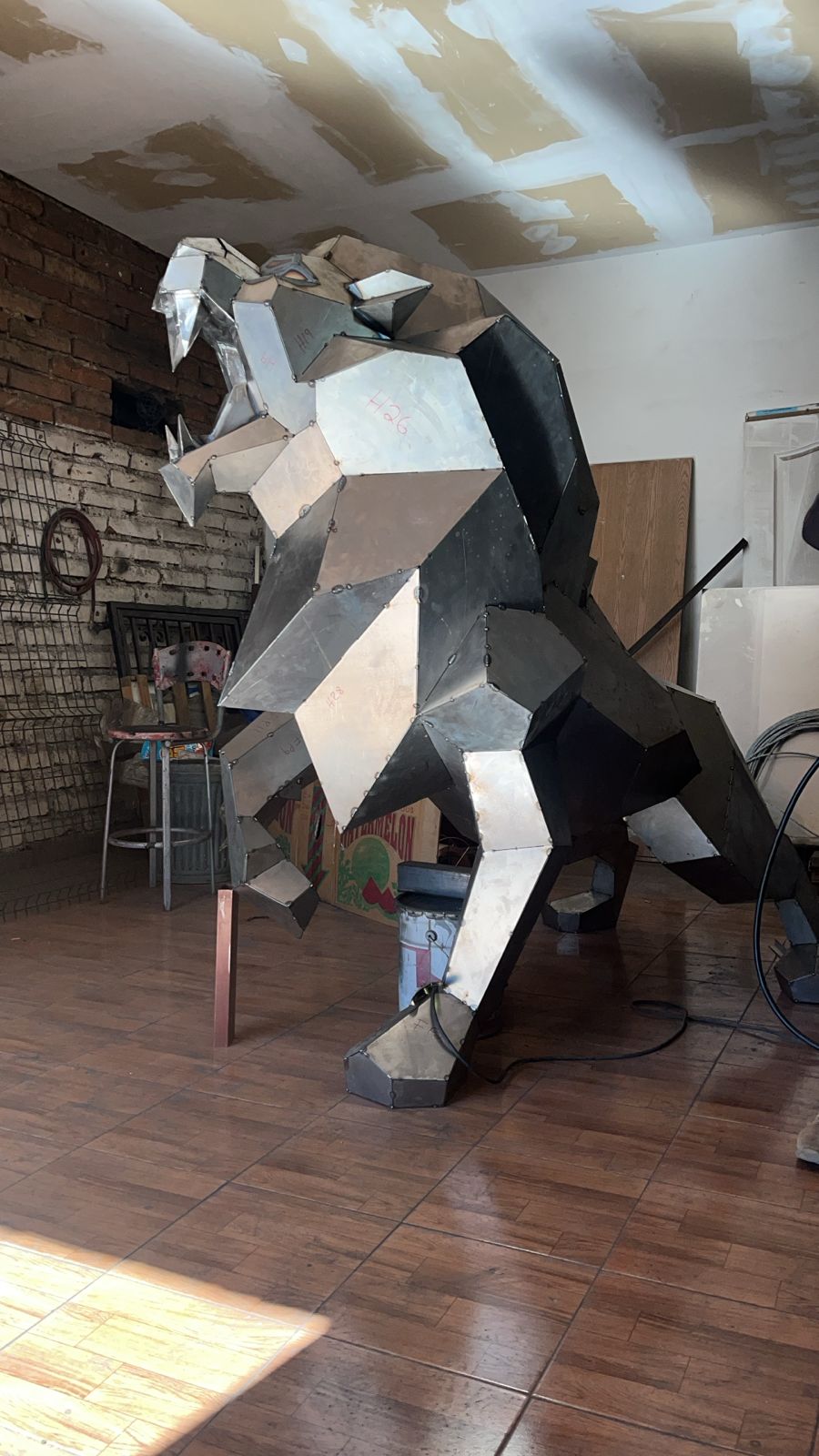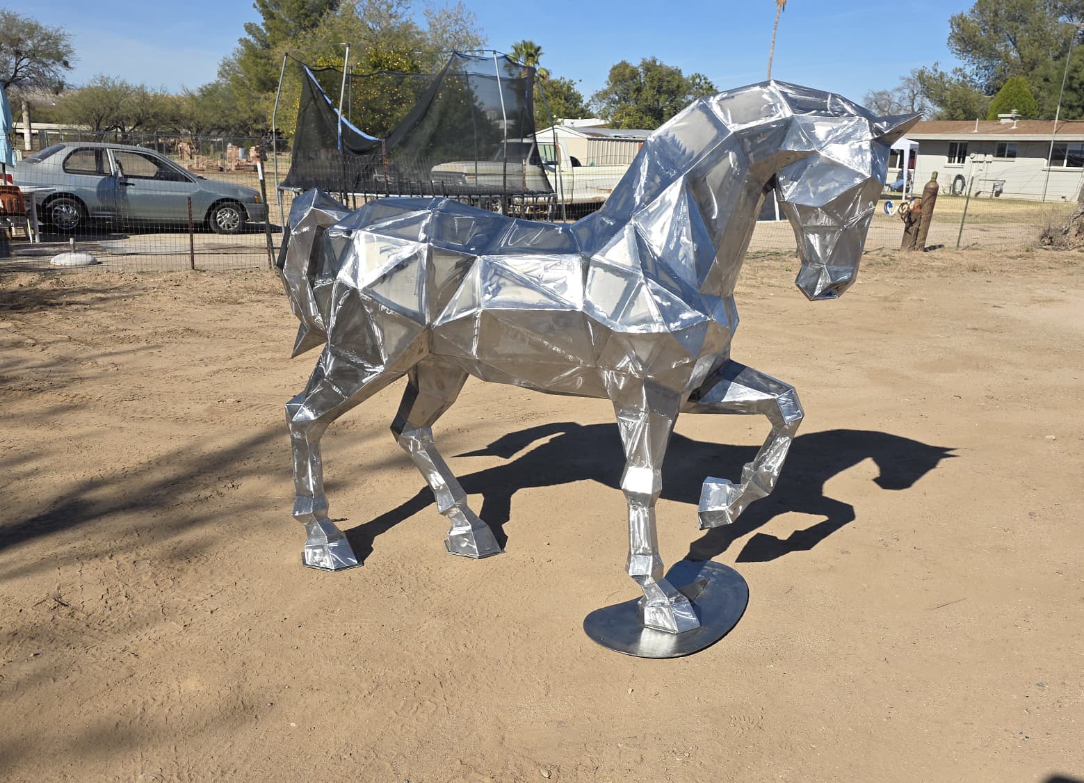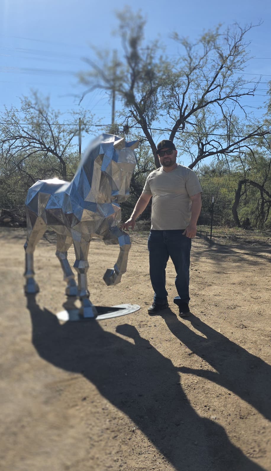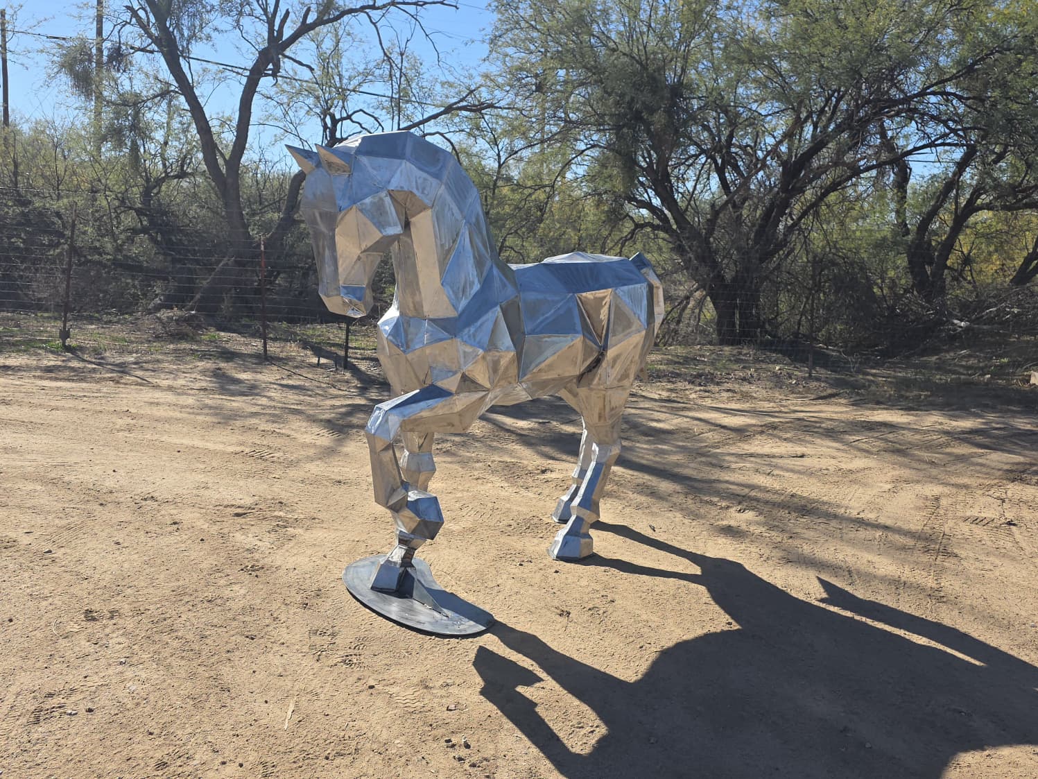 A powerful representation of grace and strength, reimagined through sharp polygonal planes. Mirror finish for dynamic reflections.